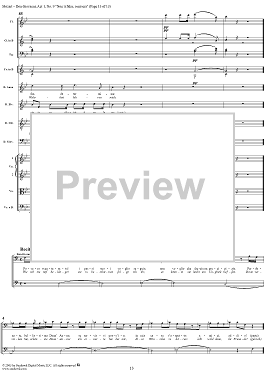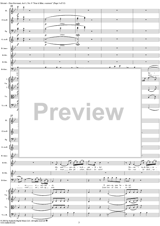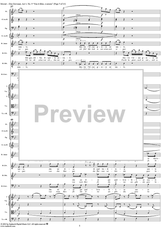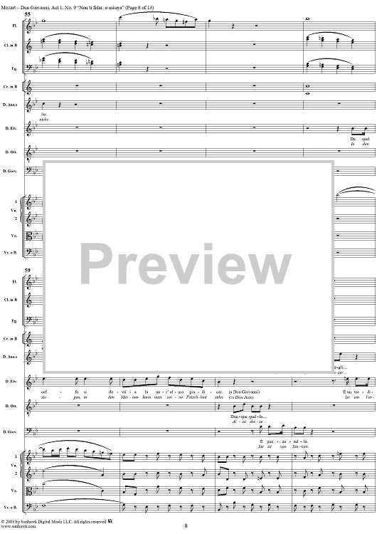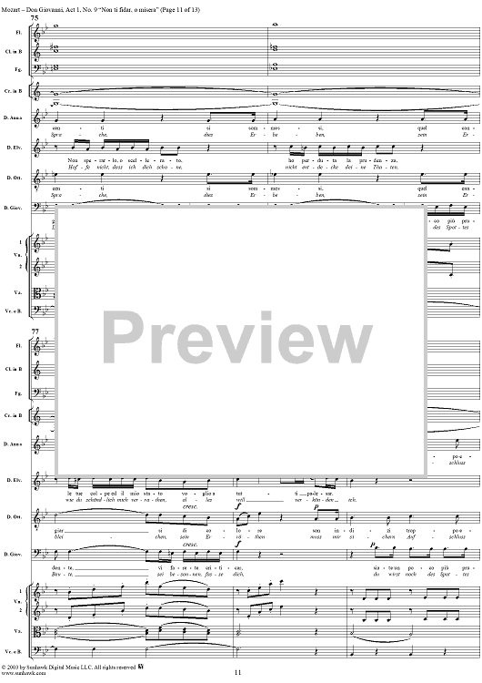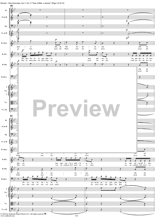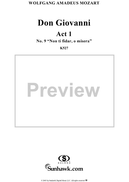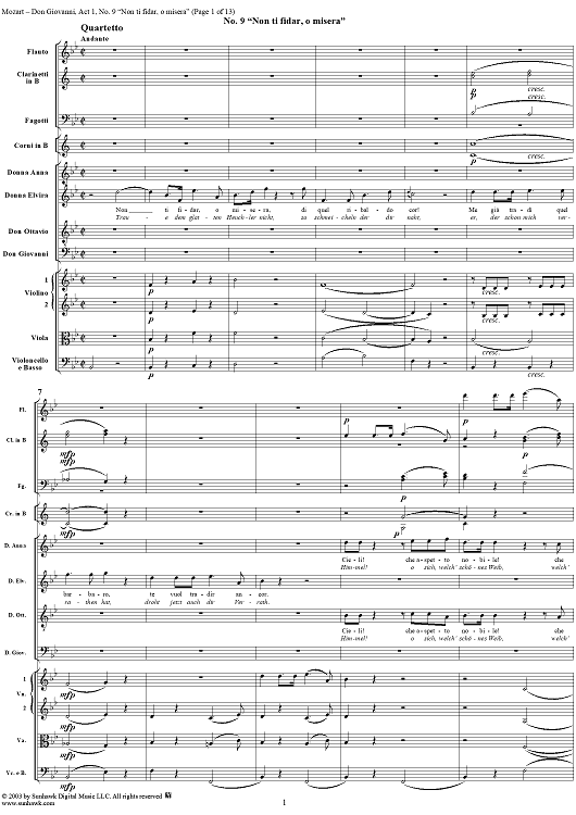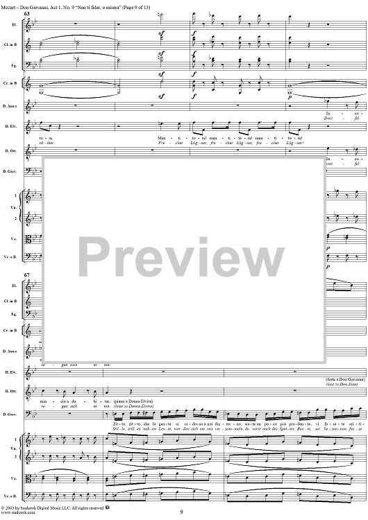 Digital Sheet Music for "Non ti fidar, o misera", No. 9 from "Don Giovanni", Act 1, K527 - Full Score by Wolfgang Amadeus Mozart scored for Voice and Orchestra; id:291912