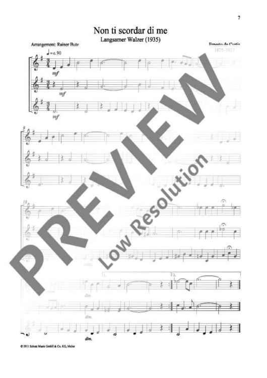 Digital Sheet Music for Non Ti Scordar Di Me by Rainer Butz, Ernesto de Curtis scored for 3 Soprano Recorders; id:481628