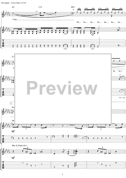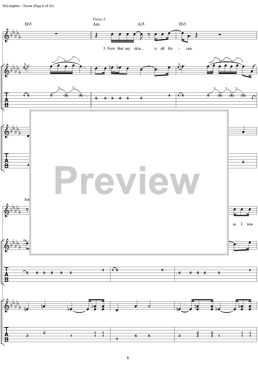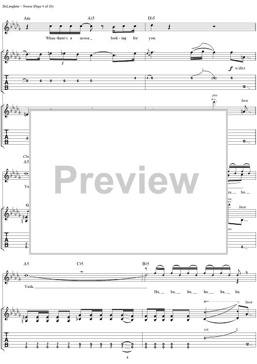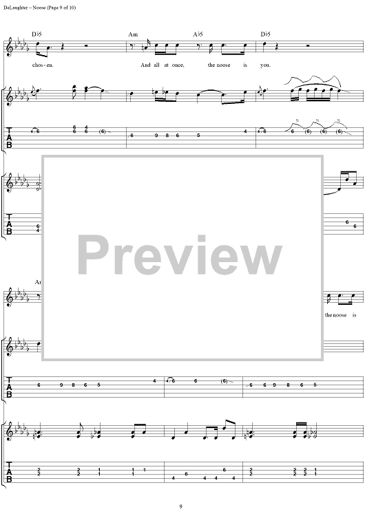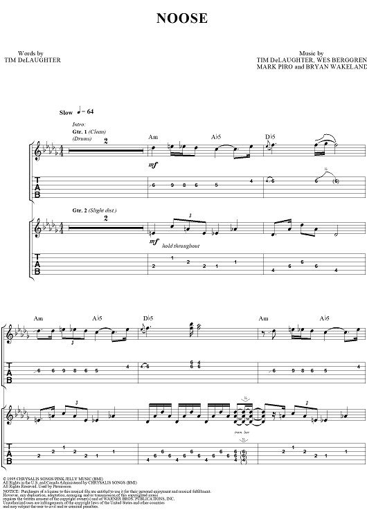 Digital Sheet Music for Noose by Wes Berggren, Mark Piro, Bryan Wakeland, Tim DeLaughter, Tripping Daisy scored for Guitar Tab/Vocal; id:120094