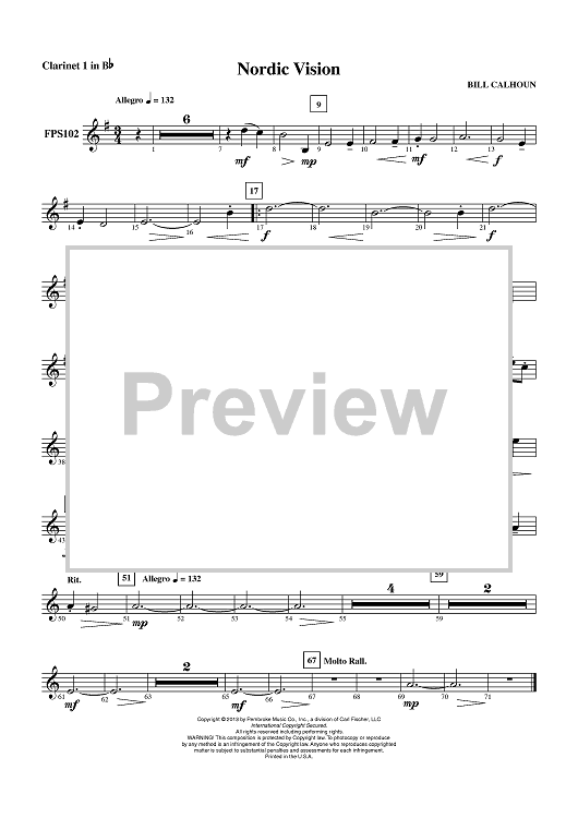 Digital Sheet Music for Nordic Vision - Clarinet 1 in Bb by Bill Calhoun scored for Concert Band; id:435788