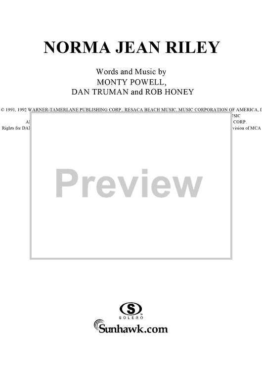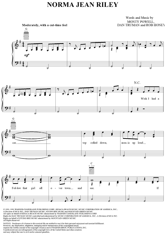 Digital Sheet Music for Norma Jean Riley by Rob Honey, Dan Truman, Monty Powell, Diamond Rio scored for Piano/Vocal/Chords; id:254968