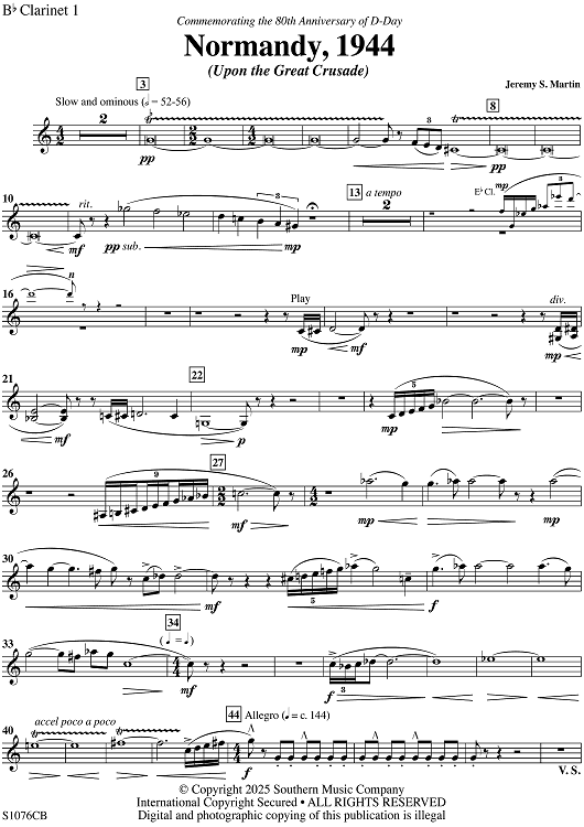 "Normandy 1944 - Bb Clarinet 1" Sheet Music by Jeremy S. Martin