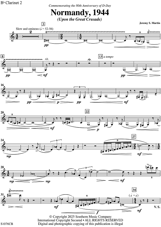 "Normandy 1944 - Bb Clarinet 2" Sheet Music by Jeremy S. Martin