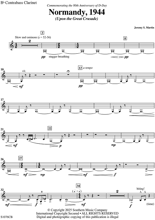 Digital Sheet Music for Normandy 1944 - Bb Contrabass Clarinet by Jeremy S. Martin scored for Symphonic Band; id:508180