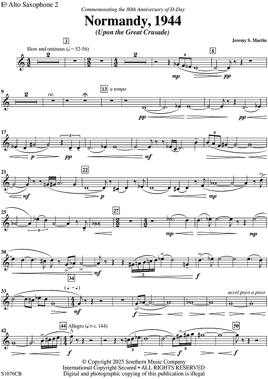 Digital Sheet Music for Normandy 1944 - Eb Alto Saxophone 2 by Jeremy S. Martin scored for Symphonic Band; id:508182