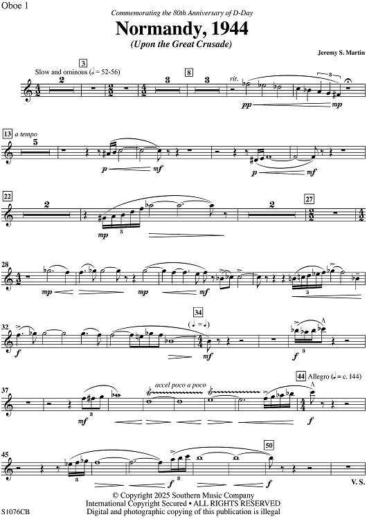 Digital Sheet Music for Normandy 1944 - Oboe 1 by Jeremy S. Martin scored for Symphonic Band; id:508170