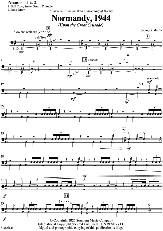 Digital Sheet Music for Normandy 1944 - Percussion 1 & 2 by Jeremy S. Martin scored for Symphonic Band; id:508203