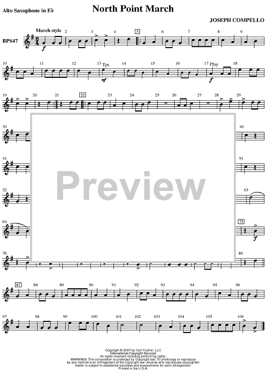 "North Point March - Alto Sax" Sheet Music by Joseph Compello