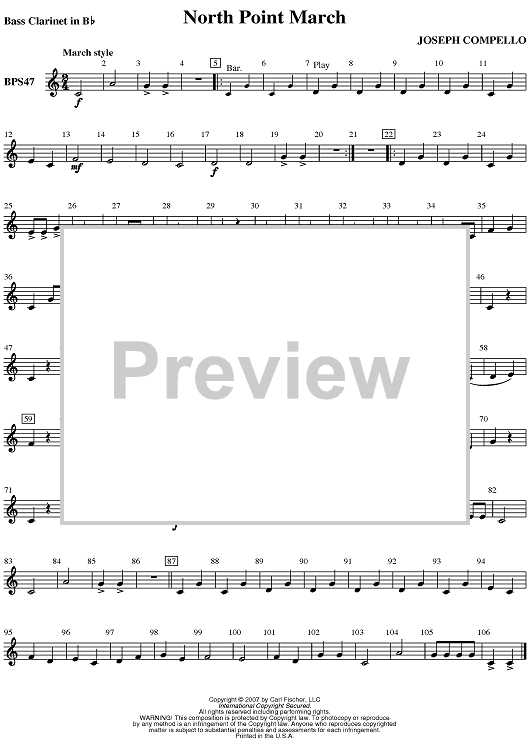 "North Point March - Bass Clarinet in B-flat" Sheet Music by Joseph Compello