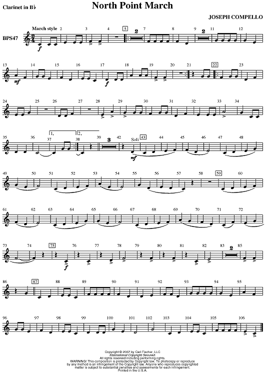 "North Point March - Clarinet in B-flat" Sheet Music by Joseph Compello