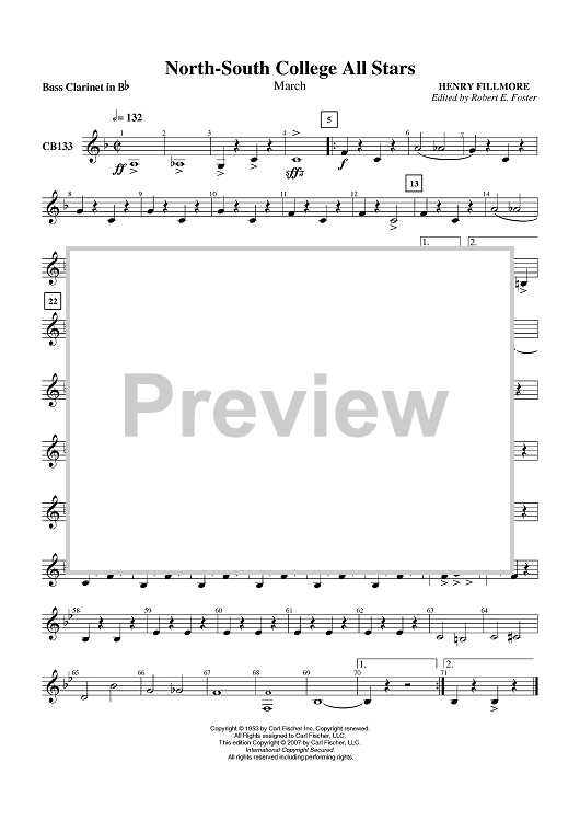 "North-South College All Stars - Bass Clarinet in B-flat" Sheet Music by Henry Fillmore
