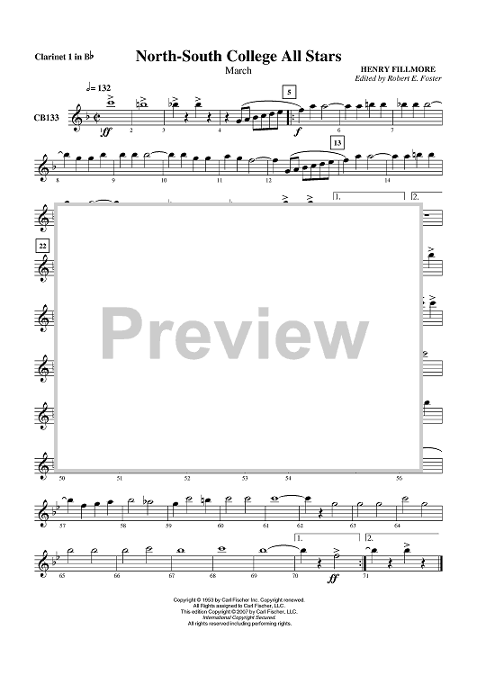 "North-South College All Stars - Clarinet 1 in B-flat" Sheet Music by Henry Fillmore