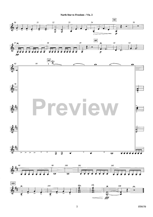 Digital Sheet Music for North Star To Freedom (In Honor of the Underground Railroad) - Violin 2 by Soon Hee Newbold scored for String Orchestra; id:440921