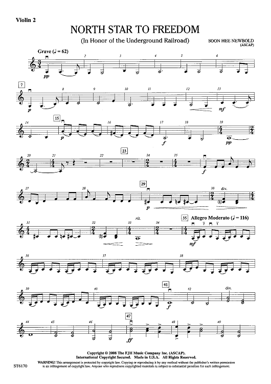 "North Star To Freedom (In Honor of the Underground Railroad) - Violin 2" Sheet Music by Soon Hee Newbold