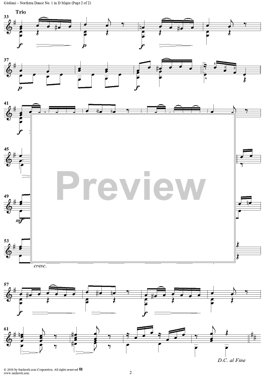 "Northern Dance No. 1 in D major - From "La Tersicore del Nord" Op. 147" Sheet Music by Mauro Giuliani