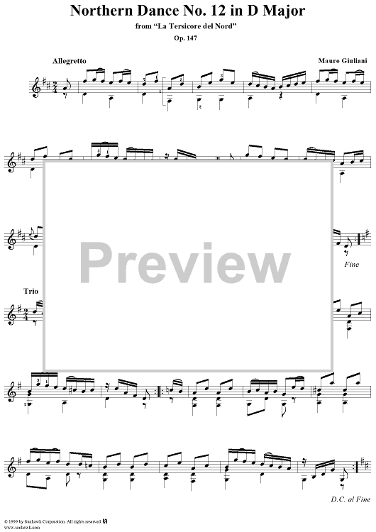 "Northern Dance No. 12 in D major - From "La Tersicore del Nord" Op. 147" Sheet Music by Mauro Giuliani
