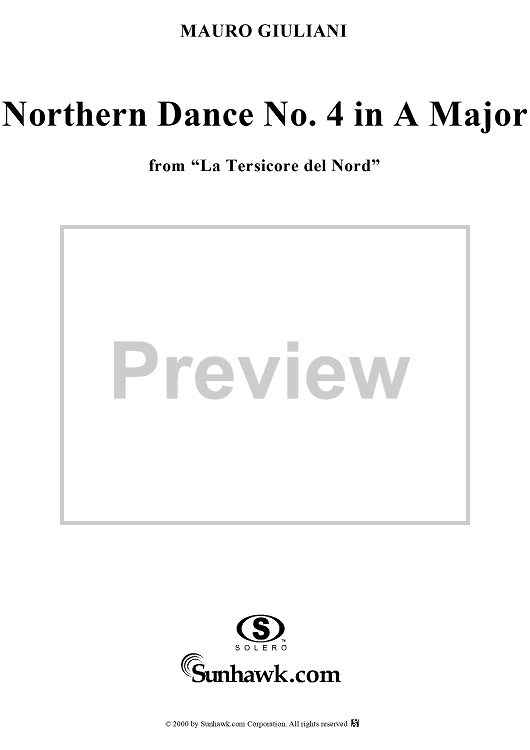 "Northern Dance No. 4 in A major - From "La Tersicore del Nord" Op. 147" Sheet Music by Mauro Giuliani