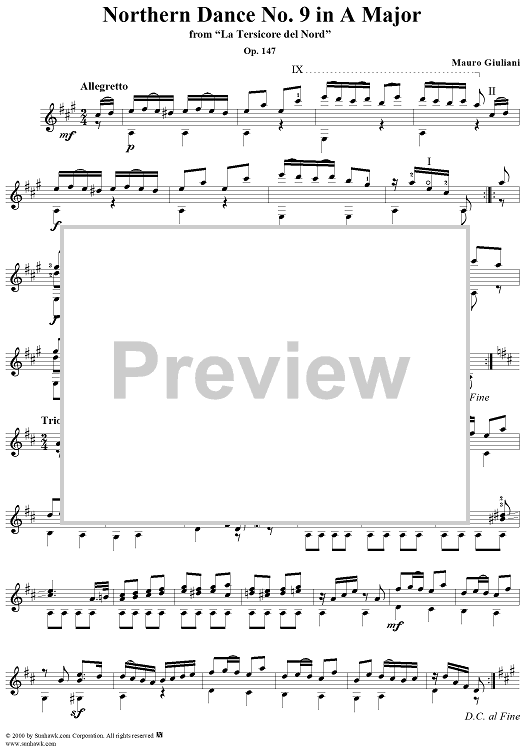 "Northern Dance No. 9 in A major - From "La Tersicore del Nord" Op. 147" Sheet Music by Mauro Giuliani