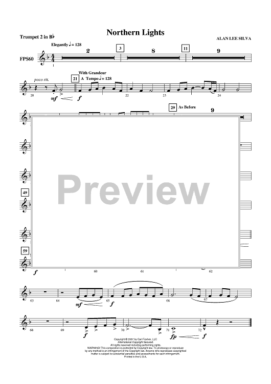 Digital Sheet Music for Northern Lights - Trumpet 2 in B-flat by Alan Lee Silva scored for Concert Band; id:407927