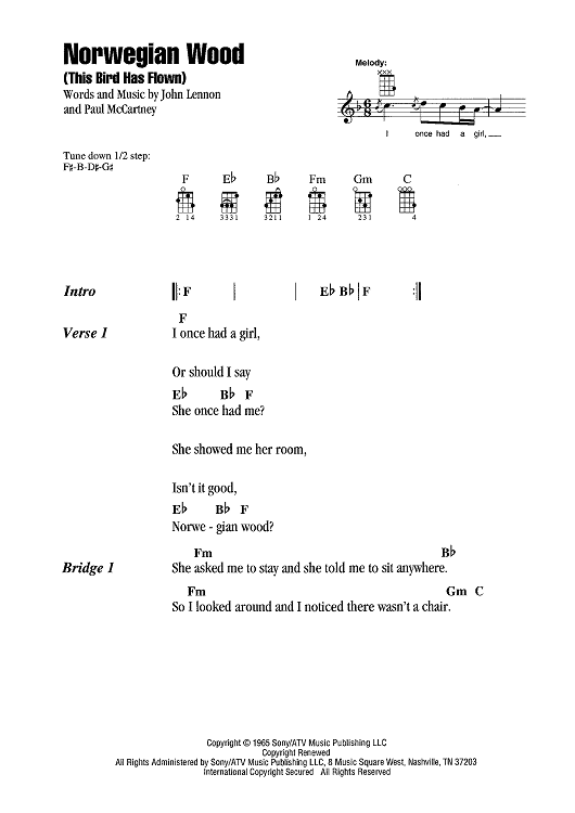 Digital Sheet Music for Norwegian Wood (The Bird Has Flown) by Paul McCartney, The Beatles, John Lennon scored for Ukulele/Vocal; id:466511