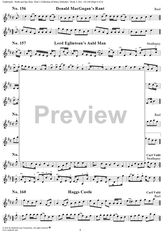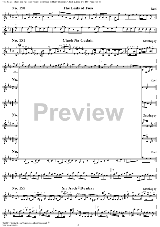 Digital Sheet Music for Nos. 141-160: Reels and Strathspeys by Traditional scored for Fiddle, Flute or Tinwhistle; id:261189
