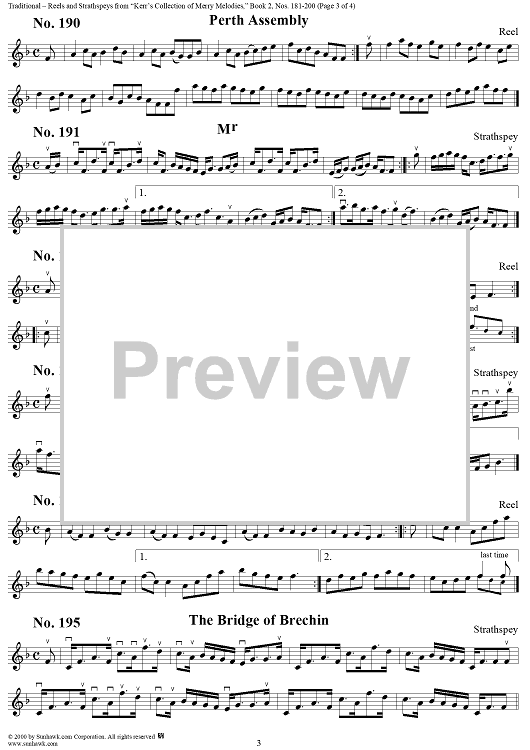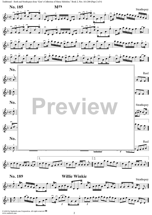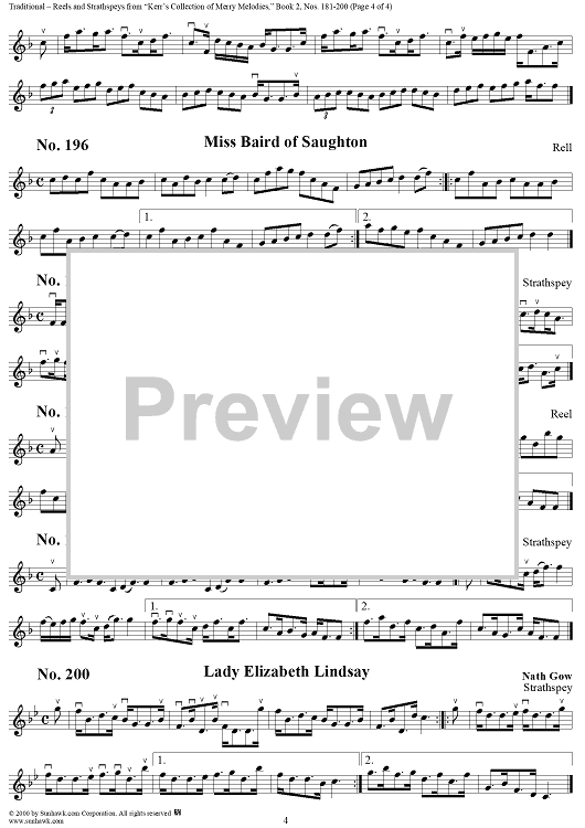 Digital Sheet Music for Nos. 181-200: Reels and Strathspeys by Traditional scored for Fiddle, Flute or Tinwhistle; id:261193