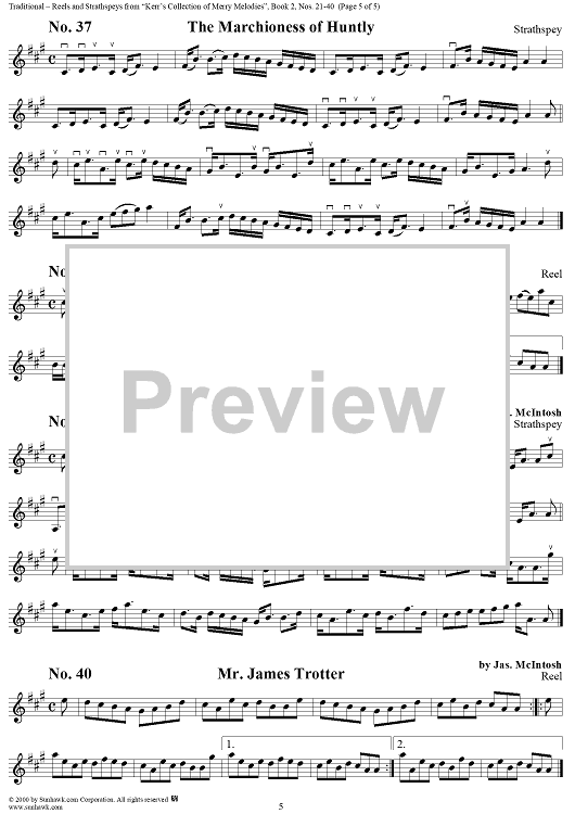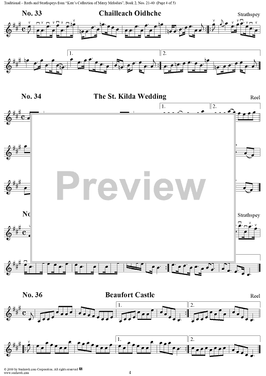 Digital Sheet Music for Nos. 21-40: Reels and Strathpeys by Traditional scored for Fiddle, Flute or Tinwhistle; id:234596