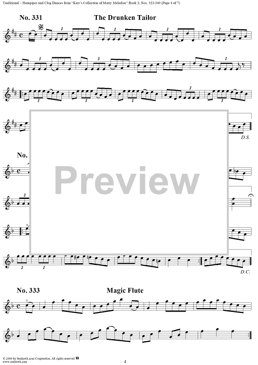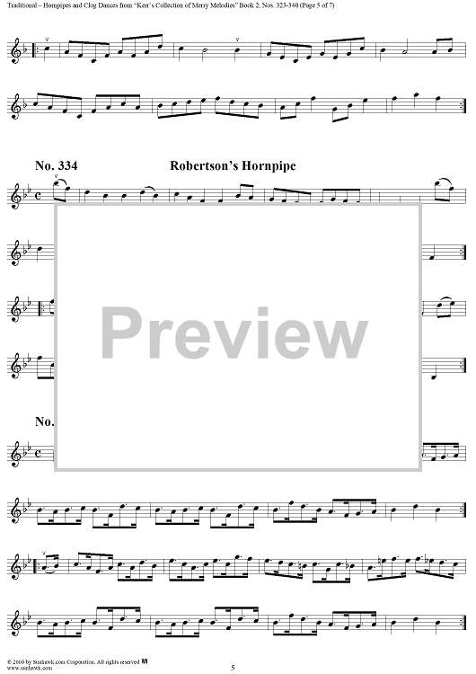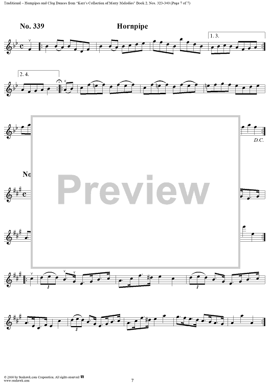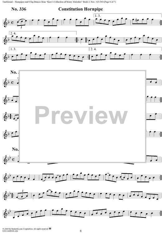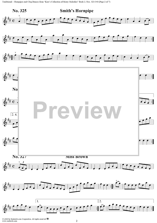 Digital Sheet Music for Nos. 323-340: Hornpipes and Clog Dances by Traditional scored for Fiddle, Flute or Tinwhistle; id:261212