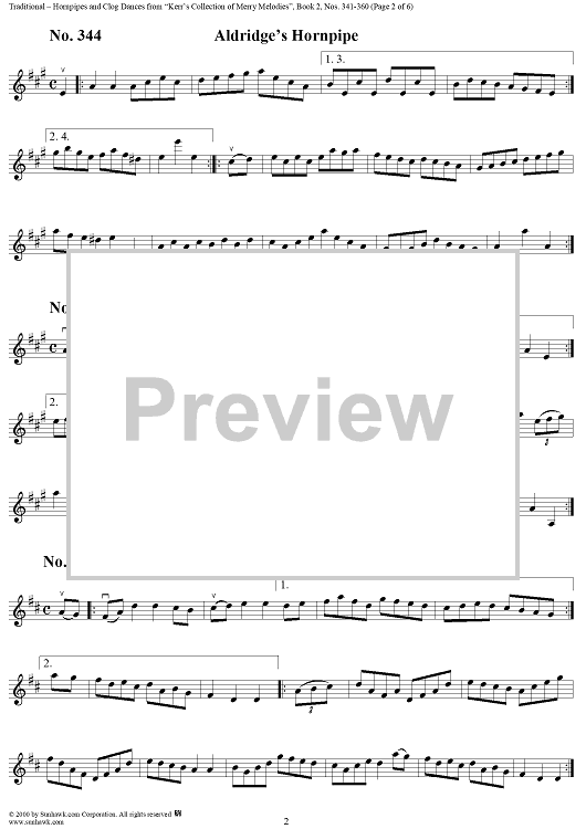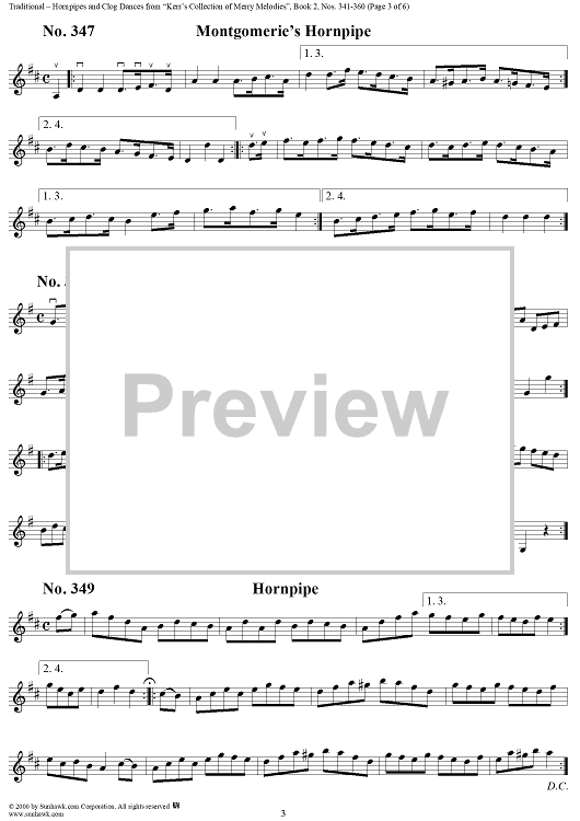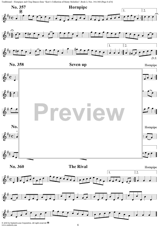 Digital Sheet Music for Nos. 341-360: Hornpipes and Clog Dances by Traditional scored for Fiddle, Flute or Tinwhistle; id:154709