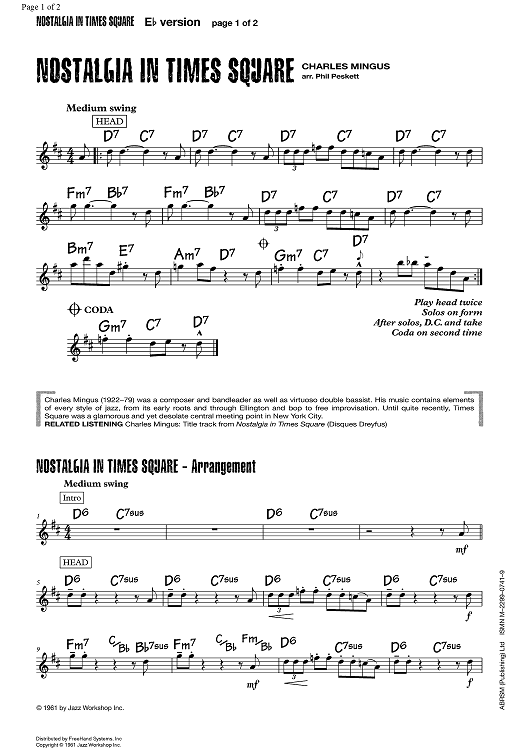 Digital Sheet Music for Nostalgia in Times Square by , Charles Mingus, Phil Peskett scored for E-flat Lead Sheet; id:355568