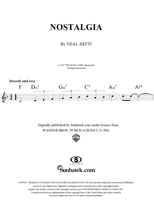 Digital Sheet Music for Nostalgia by Neal Hefti scored for Lead Sheet; id:266957