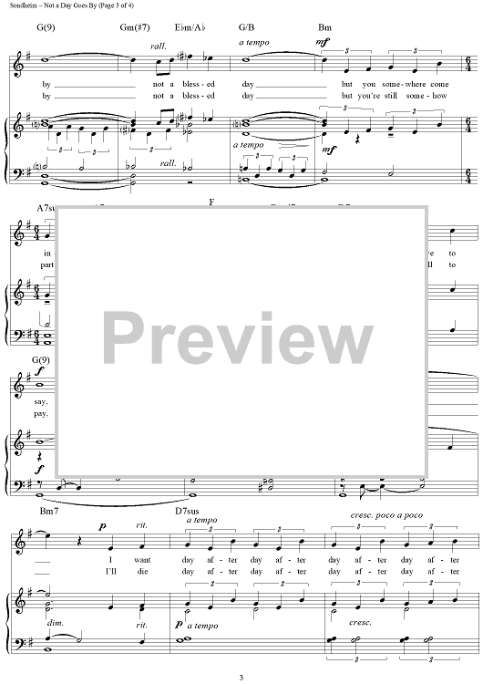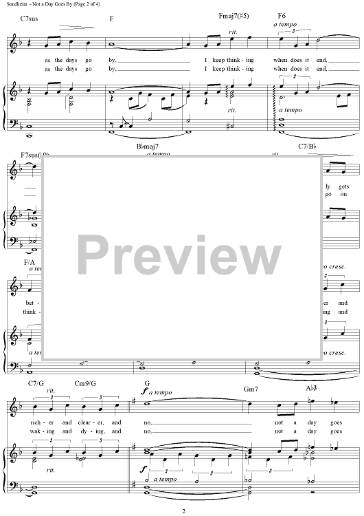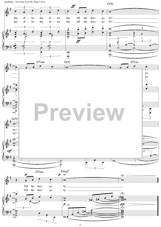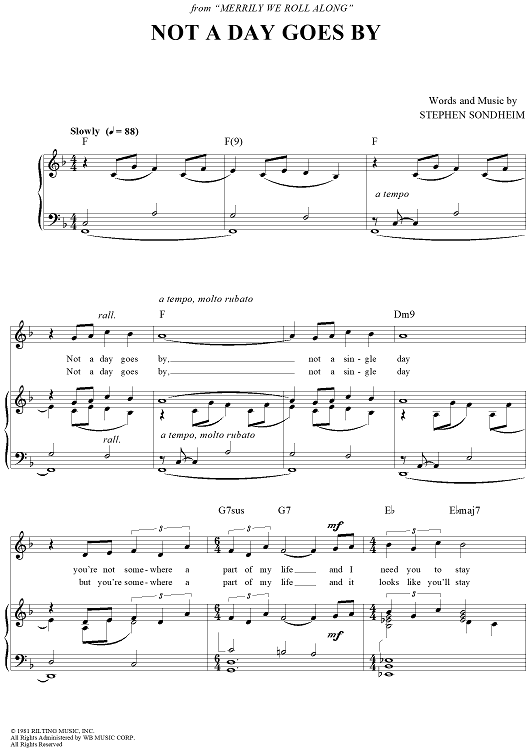 Digital Sheet Music for Not a Day Goes By by Stephen Sondheim scored for Piano/Vocal; id:120352
