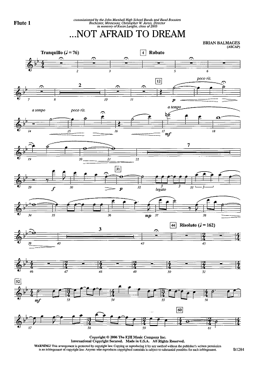 "… Not Afraid to Dream - Flute 1" Sheet Music by Brian Balmages