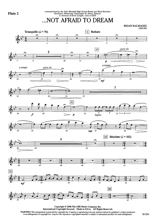 "… Not Afraid to Dream - Flute 2" Sheet Music by Brian Balmages
