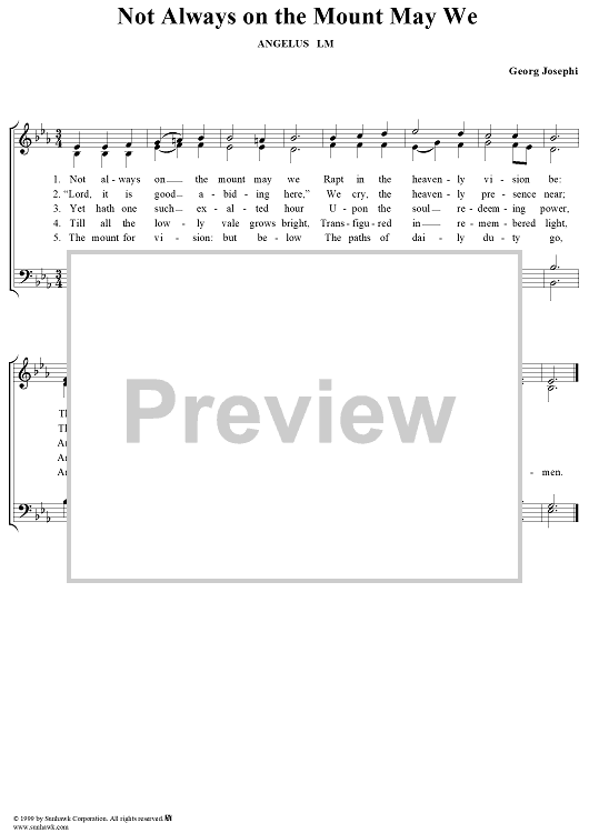 Digital Sheet Music for Not Always on the Mount May We by Georg Josephi scored for Four-part Mixed Chorus; id:265432