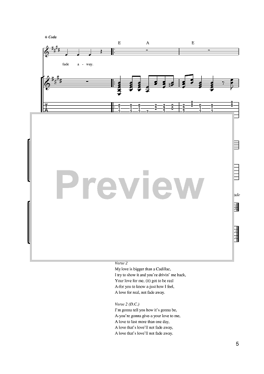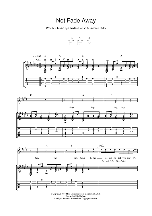 Digital Sheet Music for Not Fade Away by Norman Petty, Charles Hardin, Buddy Holly scored for Guitar Tab; id:401330