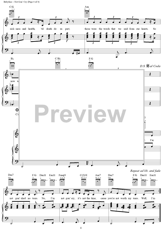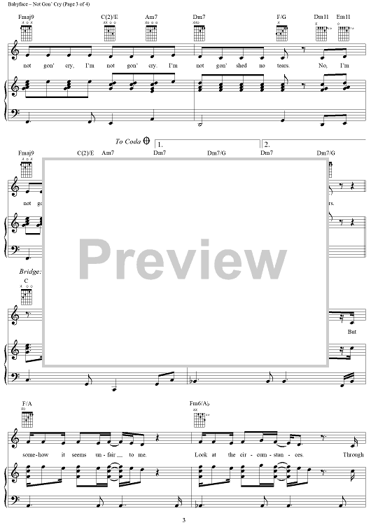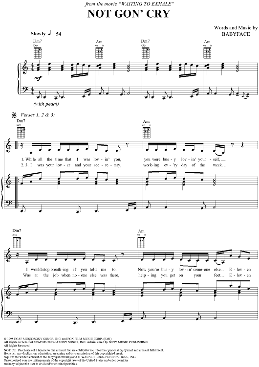 Digital Sheet Music for Not Gon' Cry by Mary J. Blige, Babyface scored for Piano/Vocal/Chords; id:240692