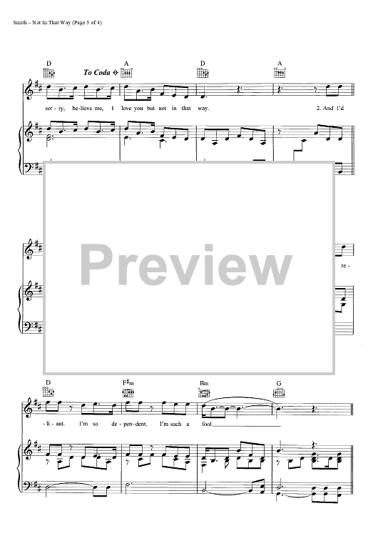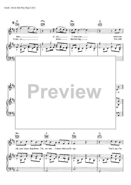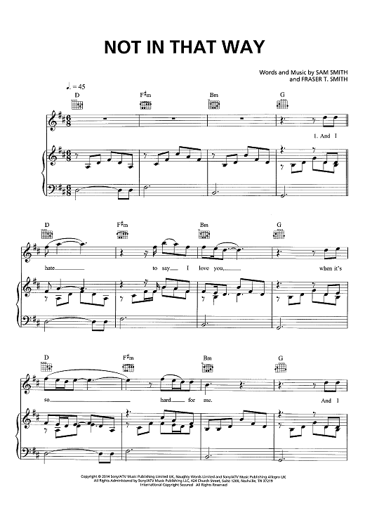 Digital Sheet Music for Not In That Way by Fraser T. Smith, Sam Smith scored for Piano/Vocal/Chords; id:445163