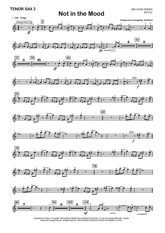 "Not in the Mood - Tenor Saxophone 2" Sheet Music by Ed Wilson