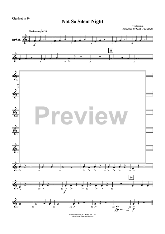Digital Sheet Music for Not So Silent Night - Clarinet in B-flat by Traditional, Sean O'Loughlin scored for Concert Band; id:407074