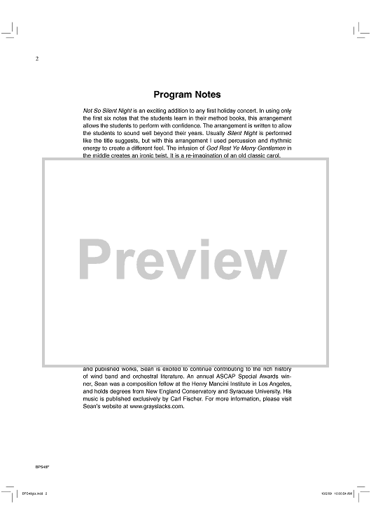 Digital Sheet Music for Not So Silent Night - Score by Traditional, Sean O'Loughlin scored for Concert Band; id:407071