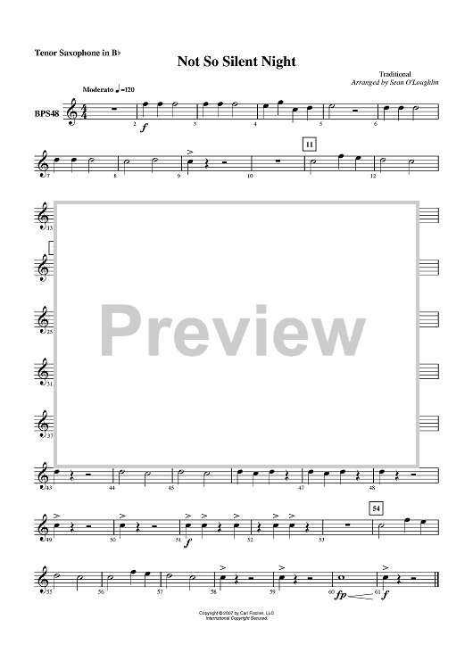 Digital Sheet Music for Not So Silent Night - Tenor Sax by Traditional, Sean O'Loughlin scored for Concert Band; id:407077