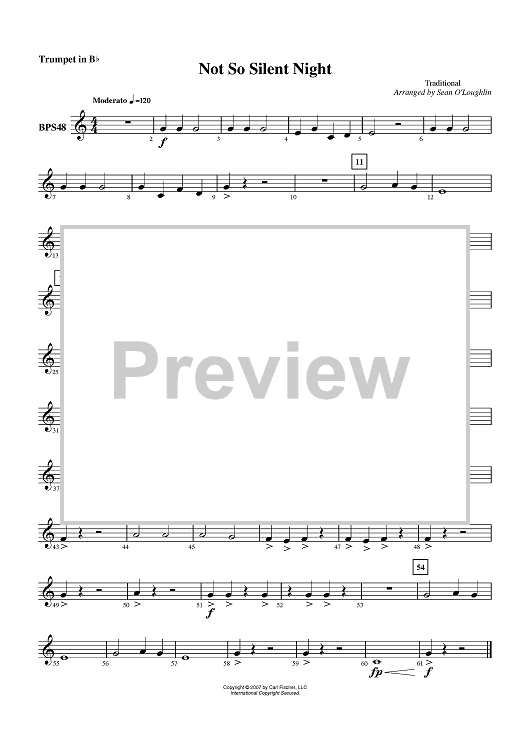 Digital Sheet Music for Not So Silent Night - Trumpet in B-flat by Traditional, Sean O'Loughlin scored for Concert Band; id:407079