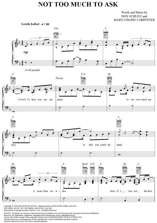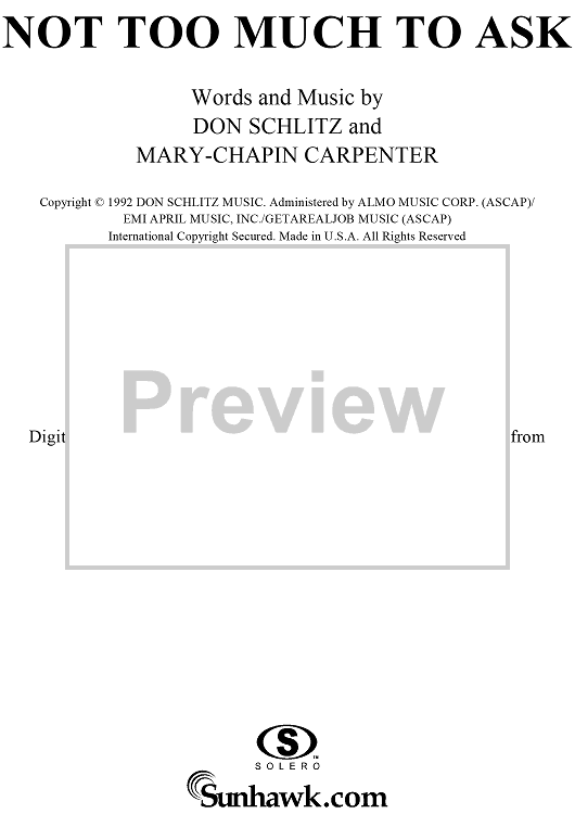 Digital Sheet Music for Not Too Much to Ask by Mary Chapin Carpenter, Don Schlitz scored for Piano/Vocal/Chords; id:257339