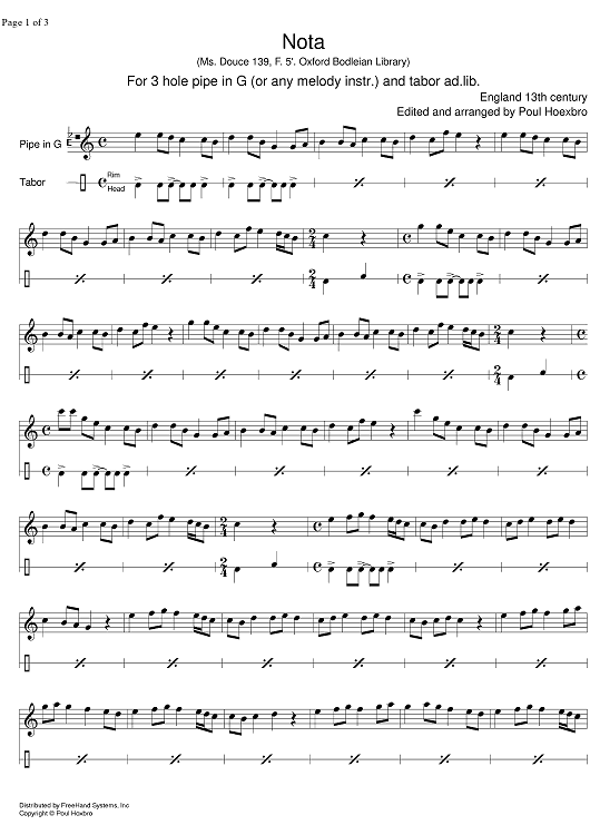 Digital Sheet Music for Nota by , Unknown Writer, Poul Hoxbro scored for G Pipe/Tabor; id:327299