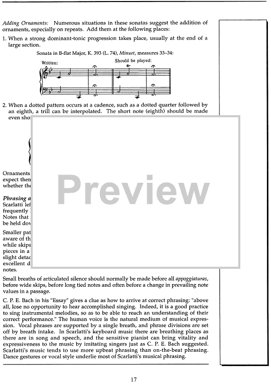 This edition will assist piano students in achieving a better, more stylistically correct interpretation of Domenico Scarlatti's piano music. These 16 intermediate to late intermediate level sonatas include dynamics, fingering, articulation and phrasing, realization of ornaments and metronome indications in parentheses. Historical background, performance problems and performance suggestions, including pedaling, are included in the "About Each Sonata" section.