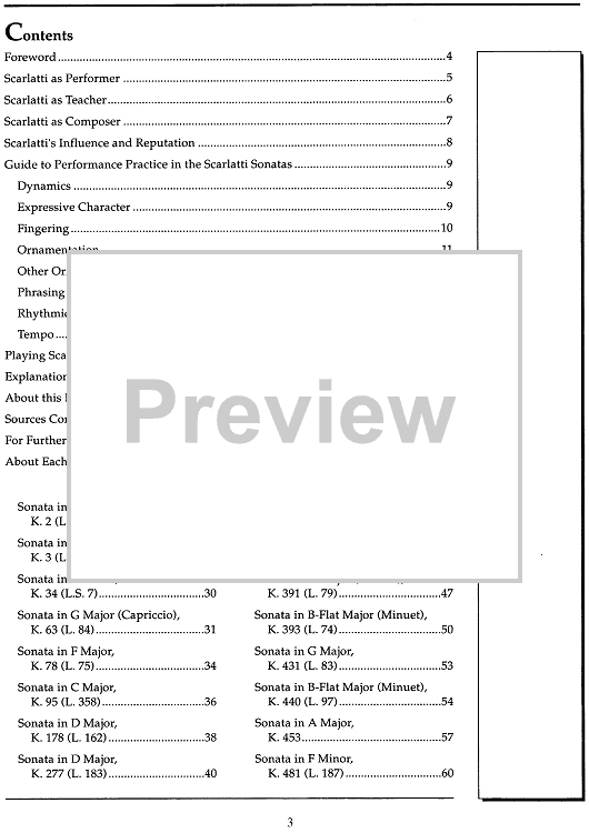 "Notes and Contents" Sheet Music by Domenico Scarlatti