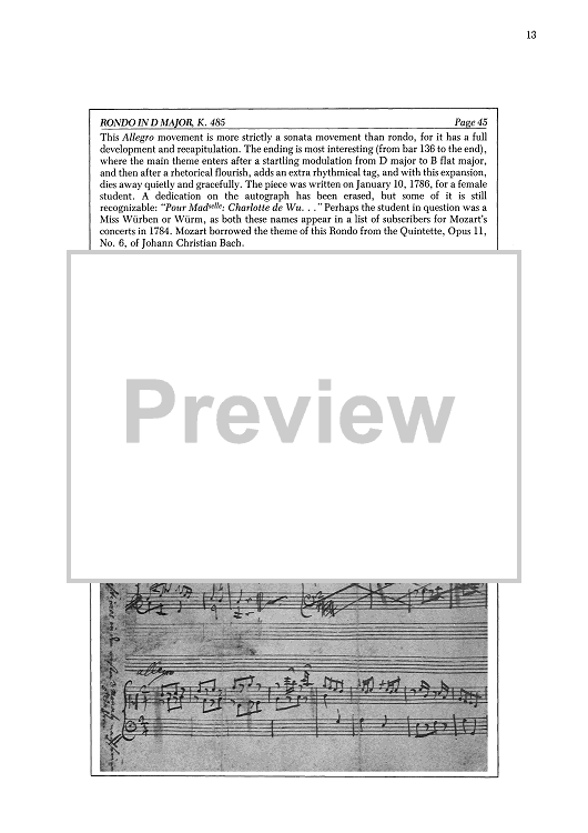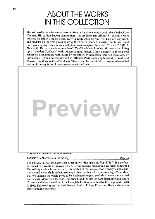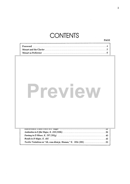 "Notes and Contents" Sheet Music by Wolfgang Amadeus Mozart