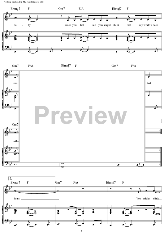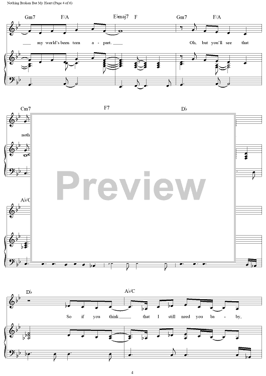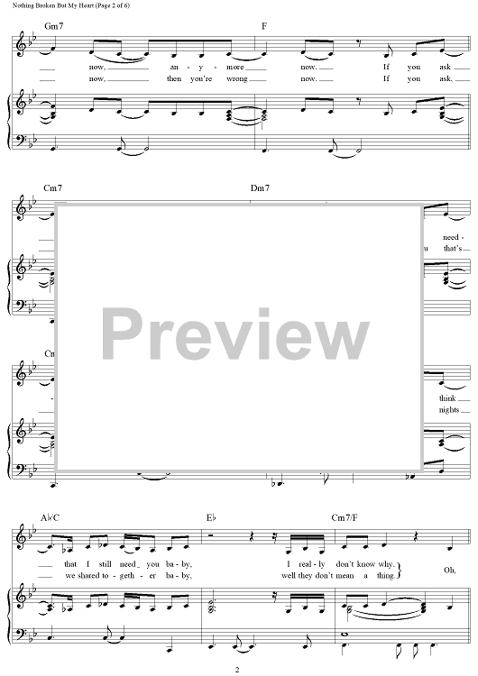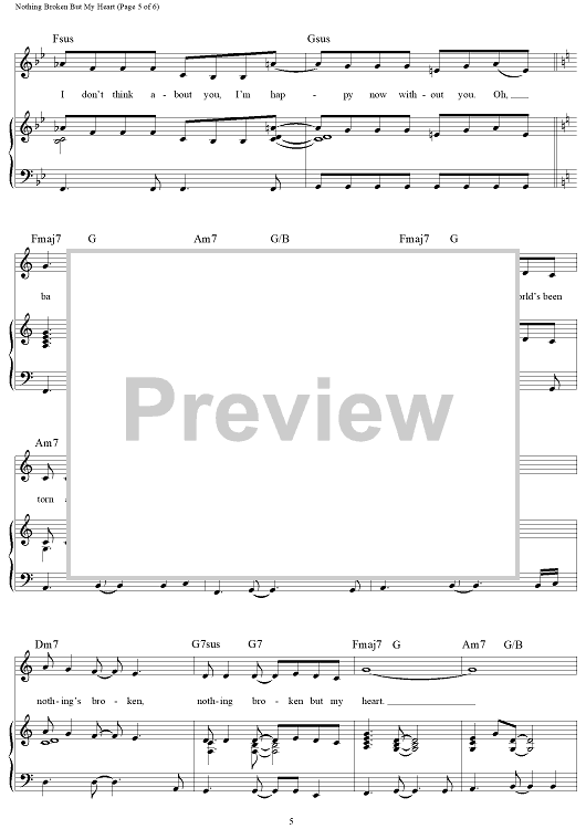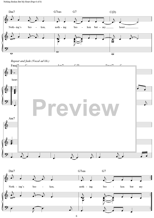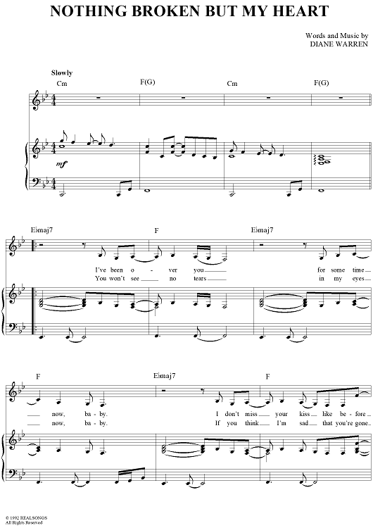 Digital Sheet Music for Nothing Broken But My Heart by Diane Warren, Celine Dion scored for Piano/Vocal/Chords; id:95965