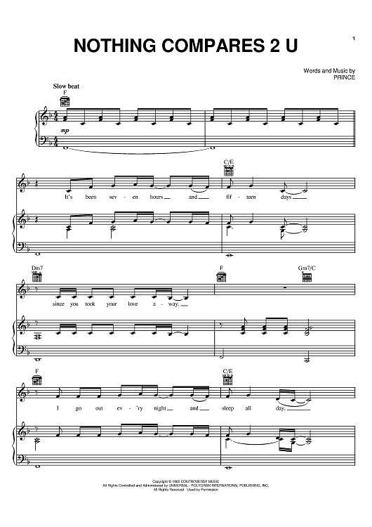 Digital Sheet Music for Nothing Compares 2 U by Prince, Sinead O'Connor scored for Piano/Vocal/Chords; id:398192